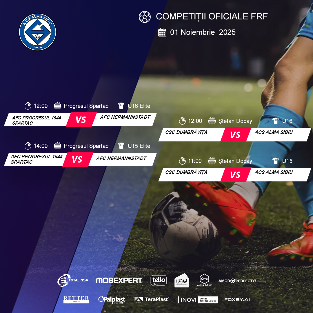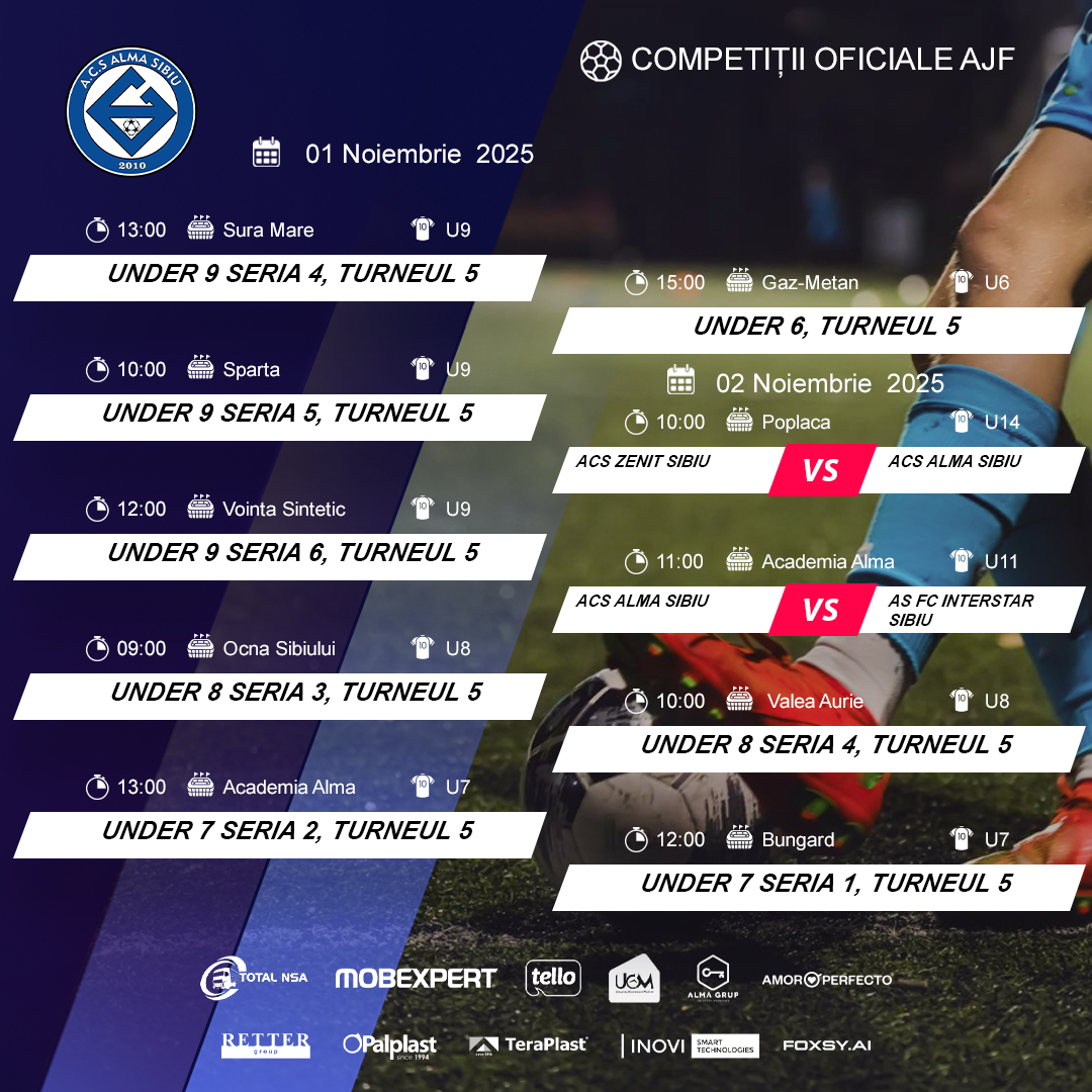Prima pagină » Programul echipelor noastre în weekendul 01-02 NOIEMBRIE – competiții AJF și FRF! Programul echipelor noastre în weekendul 01-02 NOIEMBRIE – competiții AJF și FRF! Competitii Publicat in: 30 octombrie 2025