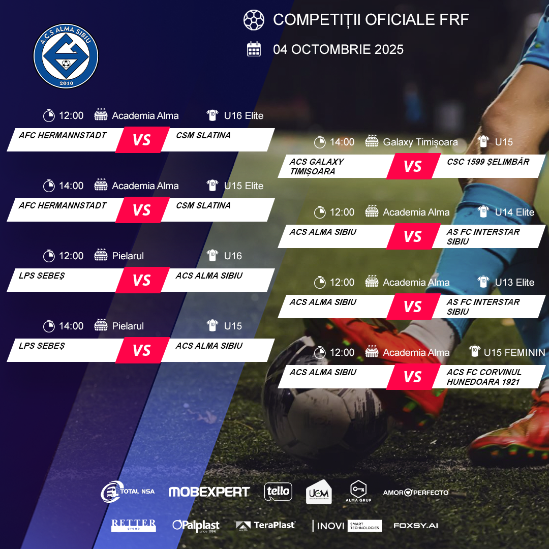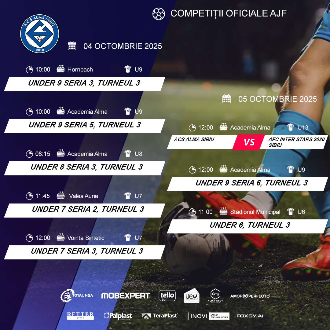 Prima pagină » Programul echipelor noastre în weekendul 04-05 OCTOMBRIE – competiții AJF și FRF! Programul echipelor noastre în weekendul 04-05 OCTOMBRIE – competiții AJF și FRF! Competitii Publicat in: 3 octombrie 2025