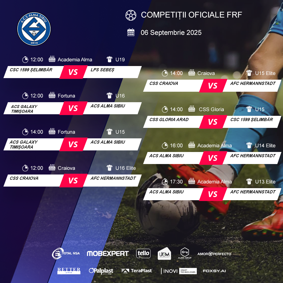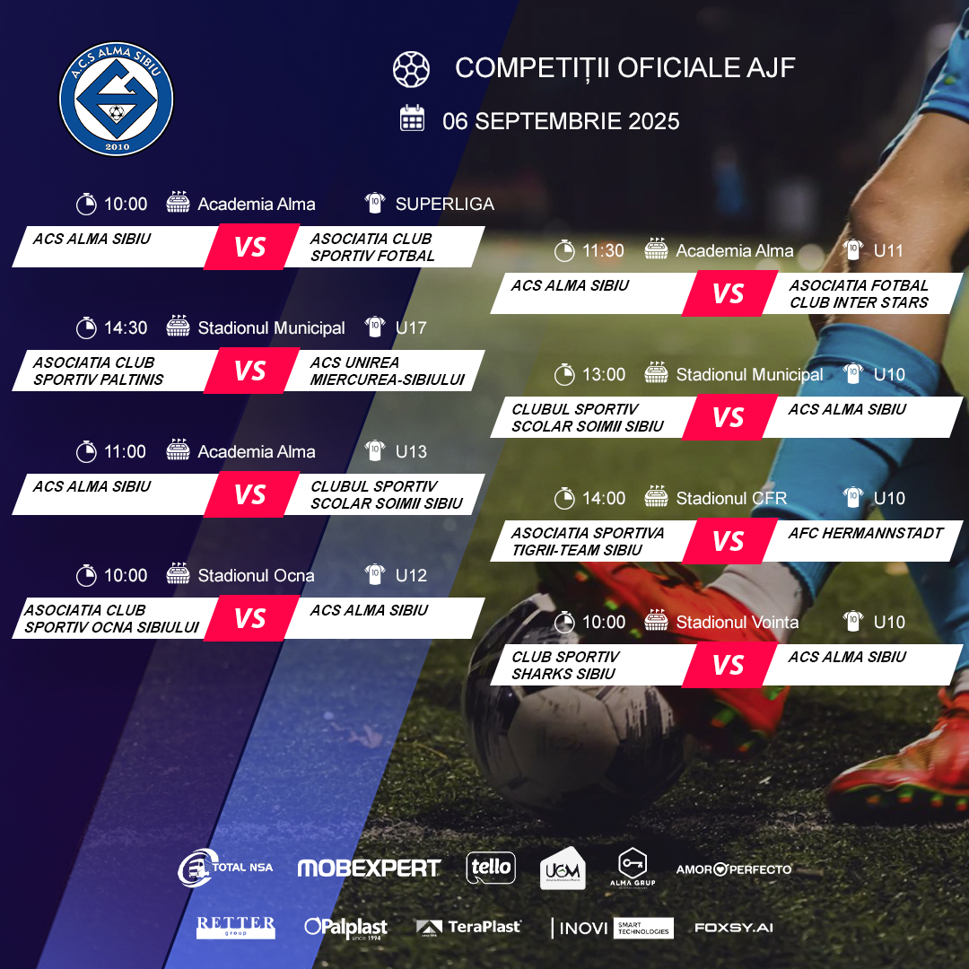Programul echipelor noastre în weekendul 06-07 SEPTEMBRIE – competiții AJF și FRF!