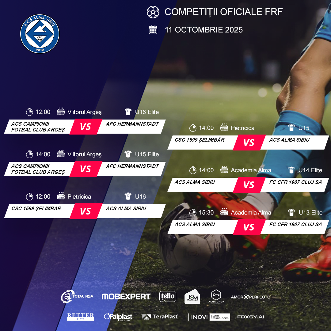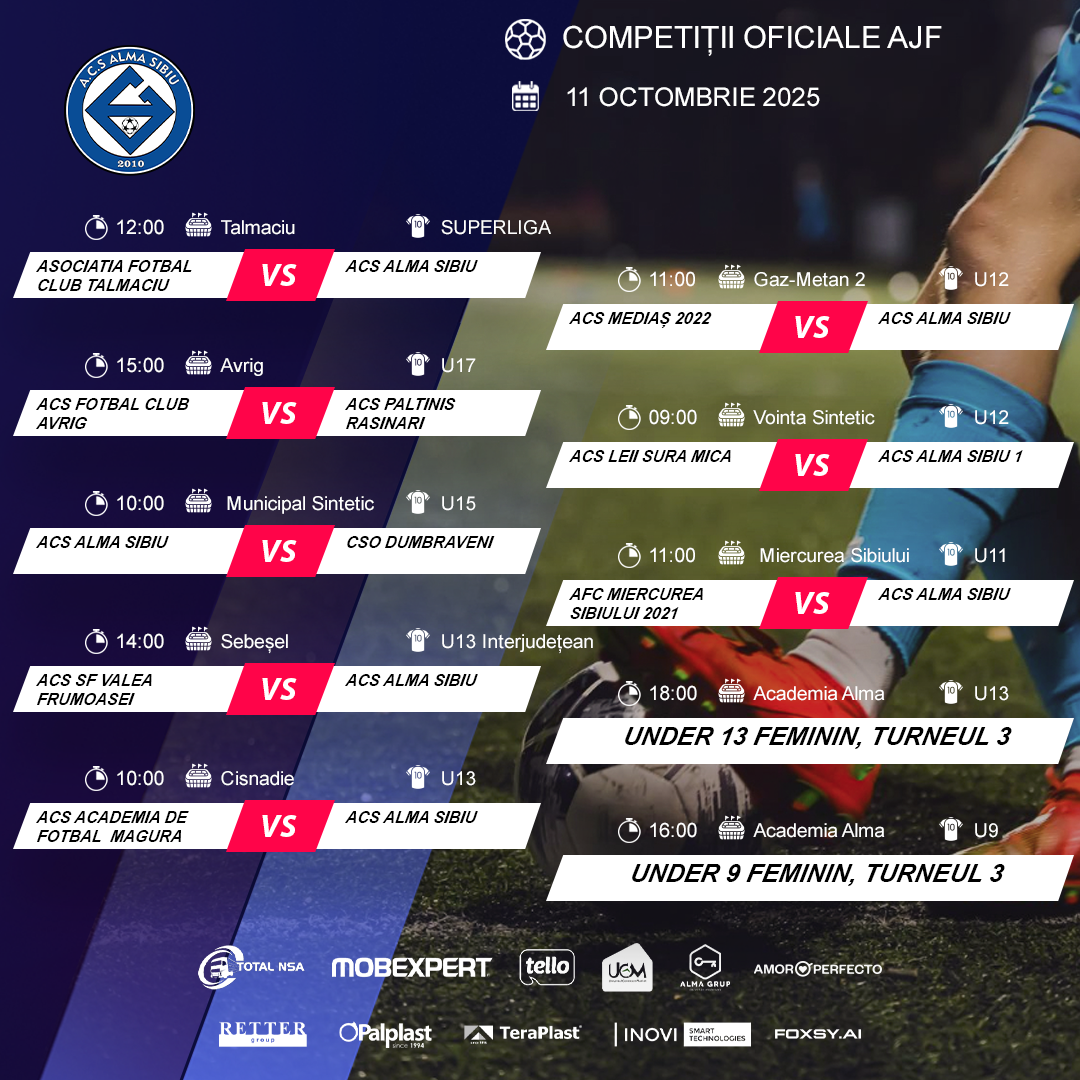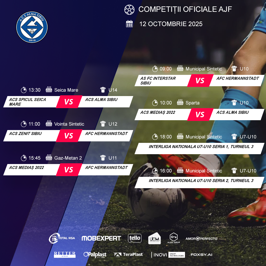 Prima pagină » Programul echipelor noastre în weekendul 11-12 OCTOMBRIE – competiții AJF și FRF! Programul echipelor noastre în weekendul 11-12 OCTOMBRIE – competiții AJF și FRF! Competitii Publicat in: 10 octombrie 2025