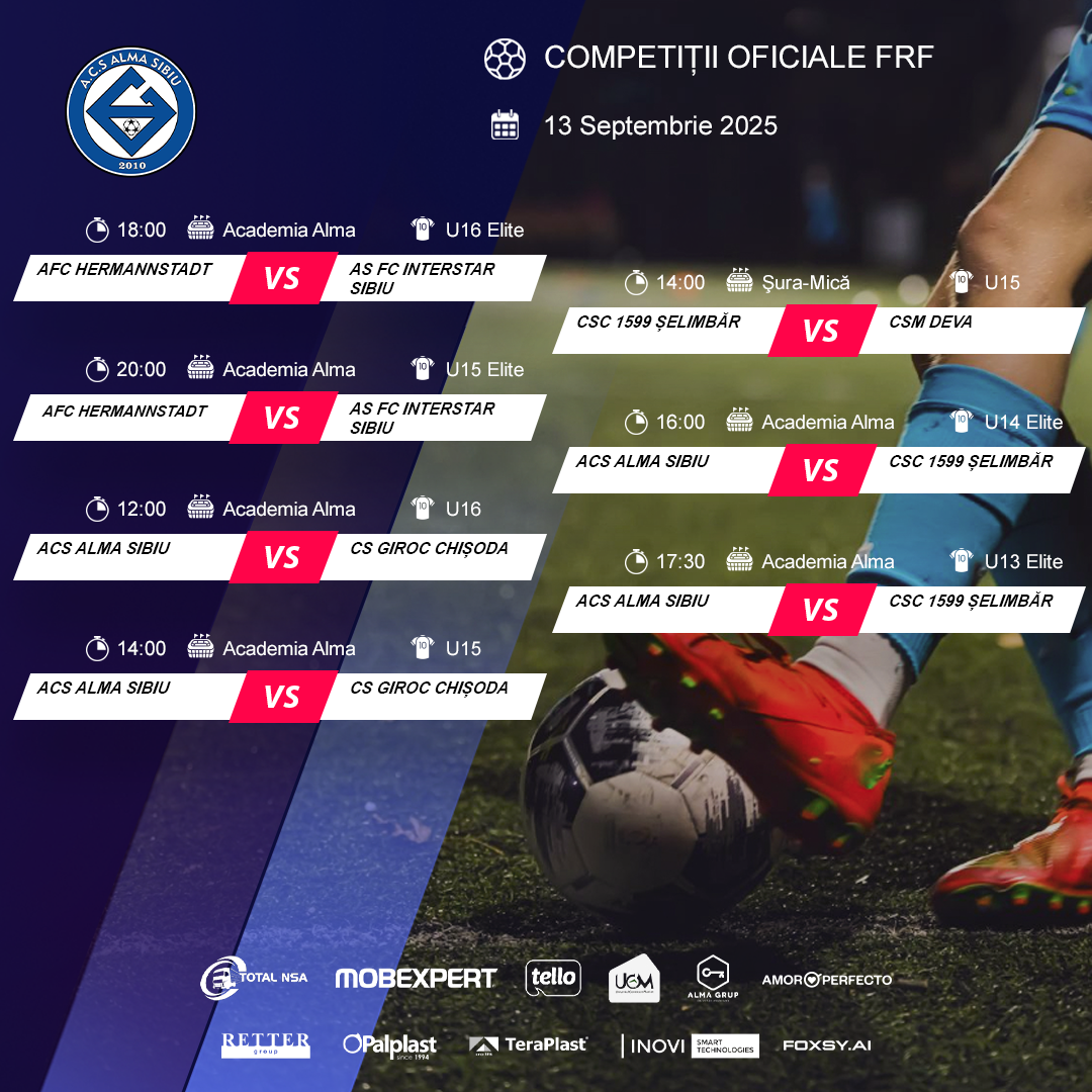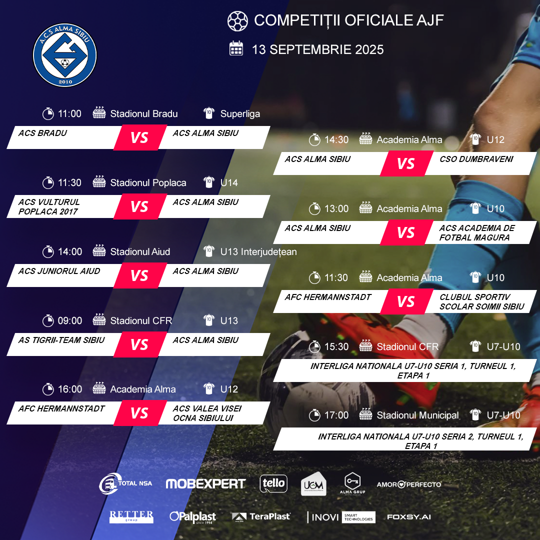 Prima pagină » Programul echipelor noastre în weekendul 13-14 SEPTEMBRIE – competiții AJF și FRF! Programul echipelor noastre în weekendul 13-14 SEPTEMBRIE – competiții AJF și FRF! Competitii Publicat in: 12 septembrie 2025